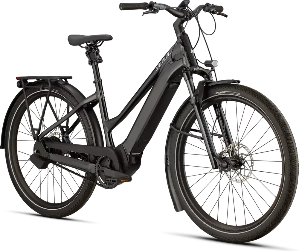 E5 Aluminum, bottom bracket motor mount, fully integrated &lockable downtube battery, internal cable routing, lock and front rack mount, sliding dropout, Colors: Gloss Castblack / Satin Silver Reflective; Gloss Seafoam / 25% Lapis Pearl / Glacial Metallic1379_85e6ee-94> |