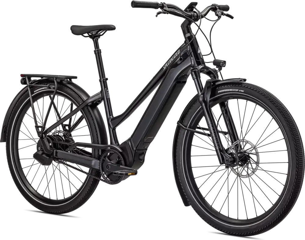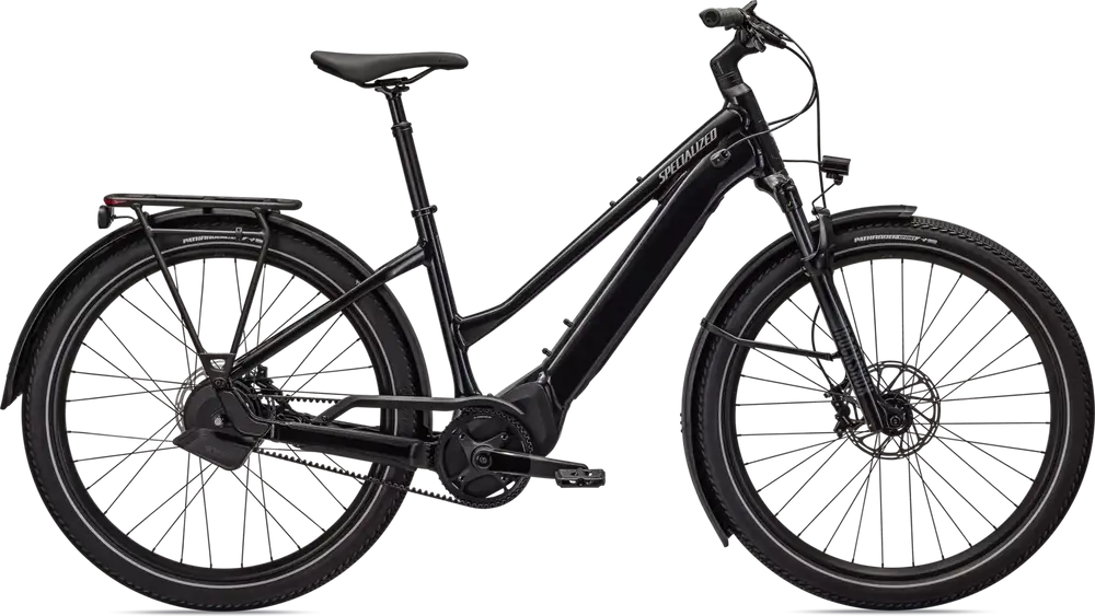 E5 Aluminum, bottom bracket motor mount, fully integrated &lockable downtube battery, internal cable routing, lock and front rack mount, sliding dropout, Colors: Cast Black / Silver Reflective; Red Tint / Silver Reflective; White Mountains / Black Reflecitve