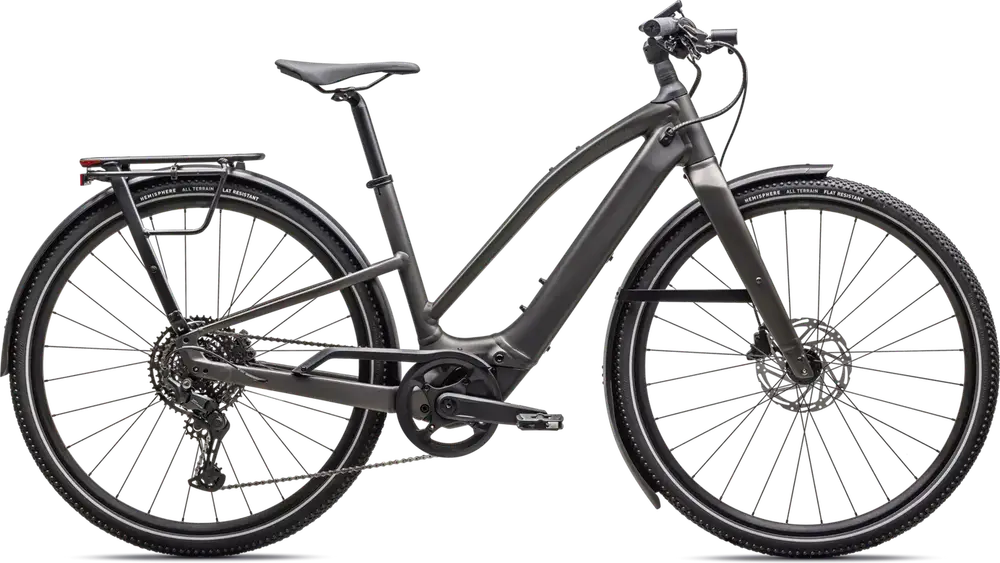 Front: Specialized Hemisphere flat protection, Reflective side walls, Wirebead, All terrain tire, 700x47c, Rear: Specialized Hemisphere flat protection, Reflective side walls, Wirebead, All terrain tire, 700x47c