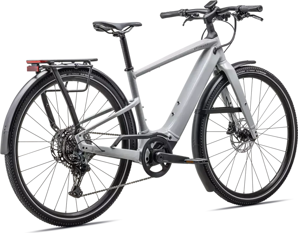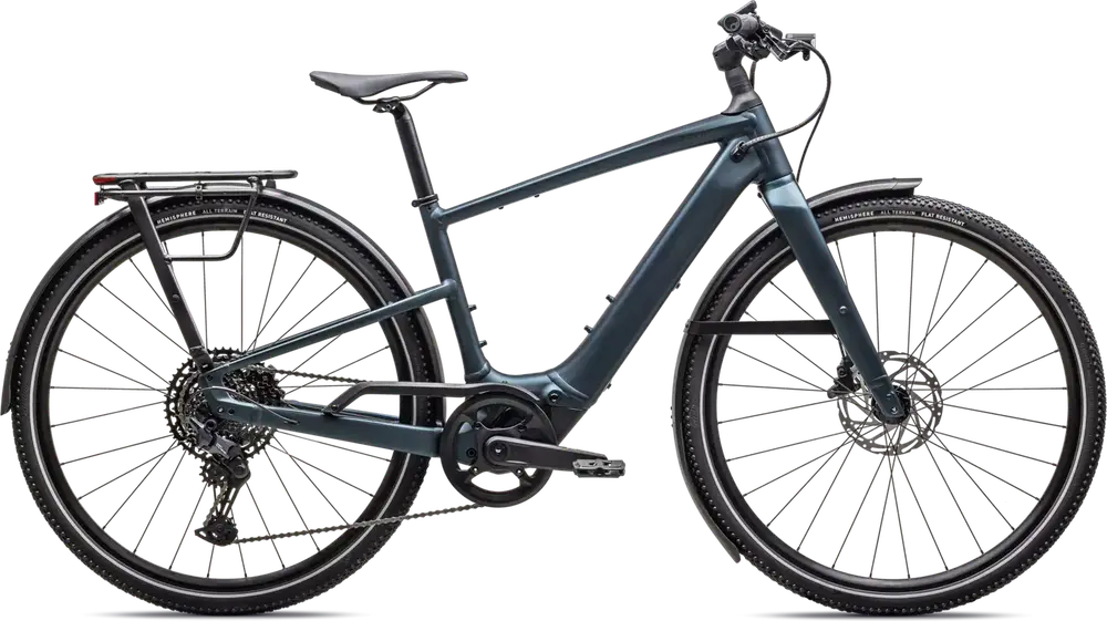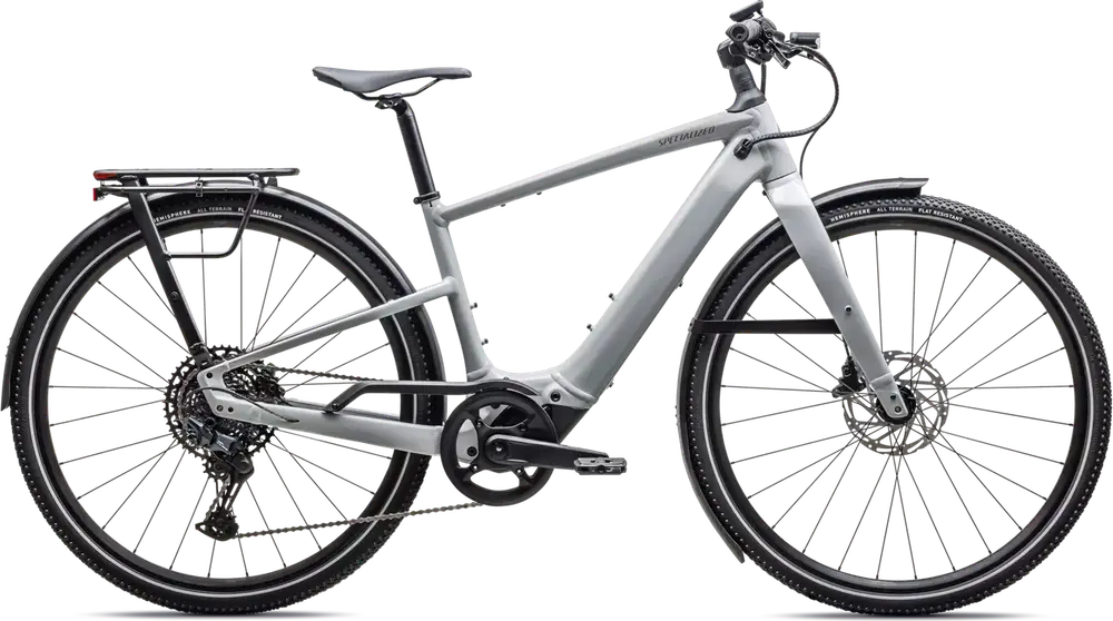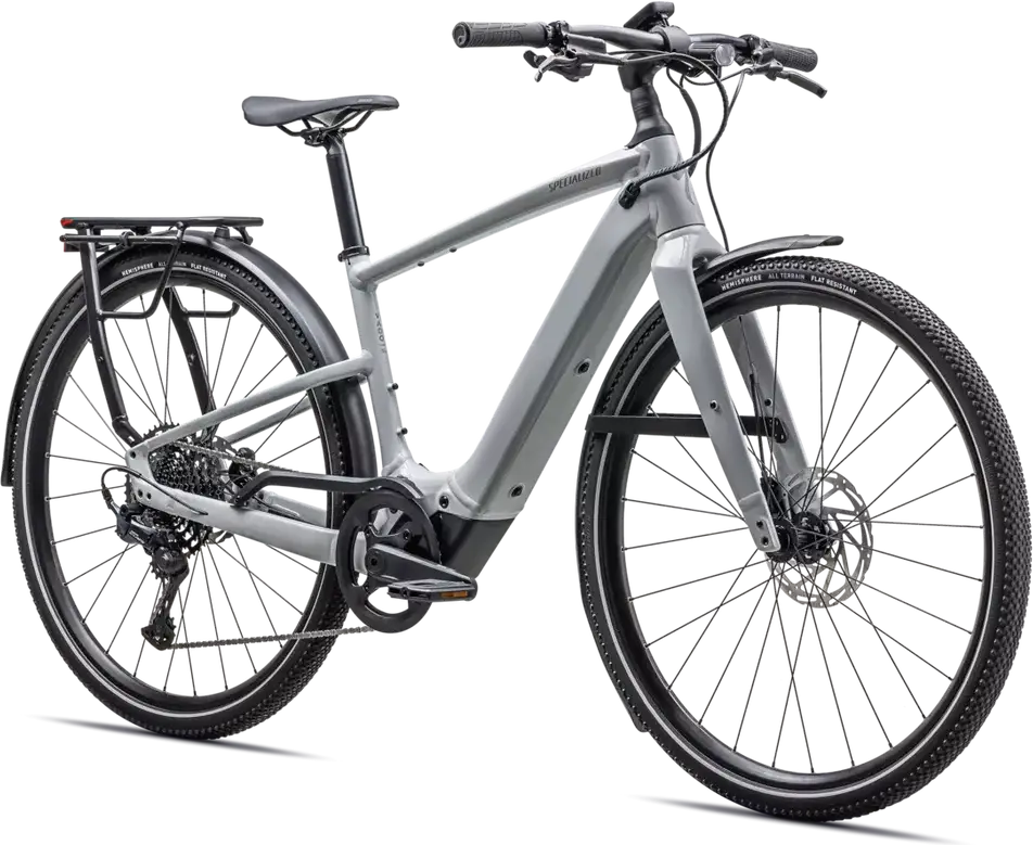Front: Specialized Hemisphere flat protection, Reflective side walls, Wirebead, All terrain tire, 700x47c, Rear: Specialized Hemisphere flat protection, Reflective side walls, Wirebead, All terrain tire, 700x47c