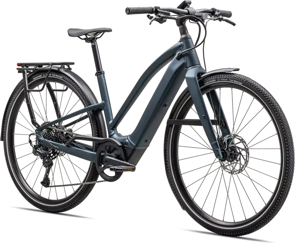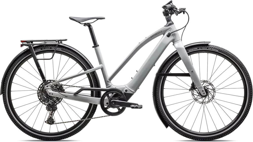 Front: Specialized Hemisphere flat protection, Reflective side walls, Wirebead, All terrain tire, 700x47c, Rear: Specialized Hemisphere flat protection, Reflective side walls, Wirebead, All terrain tire, 700x47c