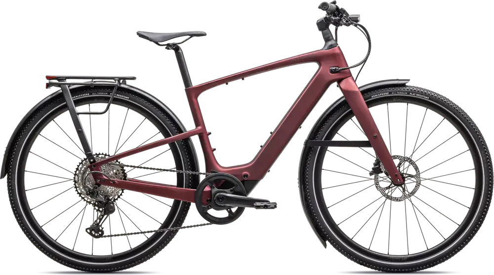 Front: Specialized Hemisphere flat protection, Reflective side walls, Wirebead, All terrain tire, 700x47c, Rear: Specialized Hemisphere flat protection, Reflective side walls, Wirebead, All terrain tire, 700x47c