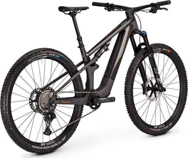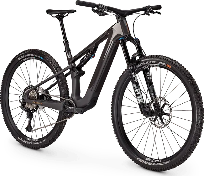 Rower elektryczny trail z pełnym zawieszeniem, karbonową ramą 29″ i osprzętem wysokiej klasy.