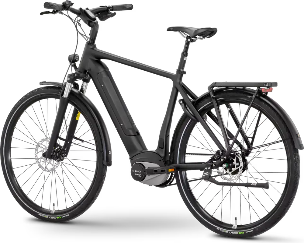 Wszechstronny e-rower trekkingowy z klasyczną męską ramą, który oferuje doskonały balans między ceną, komfortem a jakością. Jest to niezawodny i w pełni wyposażony partner na codzienne dojazdy i rekreacyjne przejażdżki.